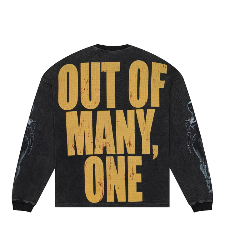 This thermal is crafted from 10oz mid-weight washed fabric and features a striking digital art piece. With a limited run of 555 examples, it comes with a numbered tag to confirm its authenticity.
