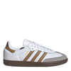 Born on the soccer field, the Samba is a timeless icon of street style. These shoes stay true to their legacy with a soft leather upper and suede overlays. Suede T-toe design The authentic Samba look Textured rubber cupsole With pivot point inspired by soccer heritage Gold foil embossing Metallic detailing spells out Samba