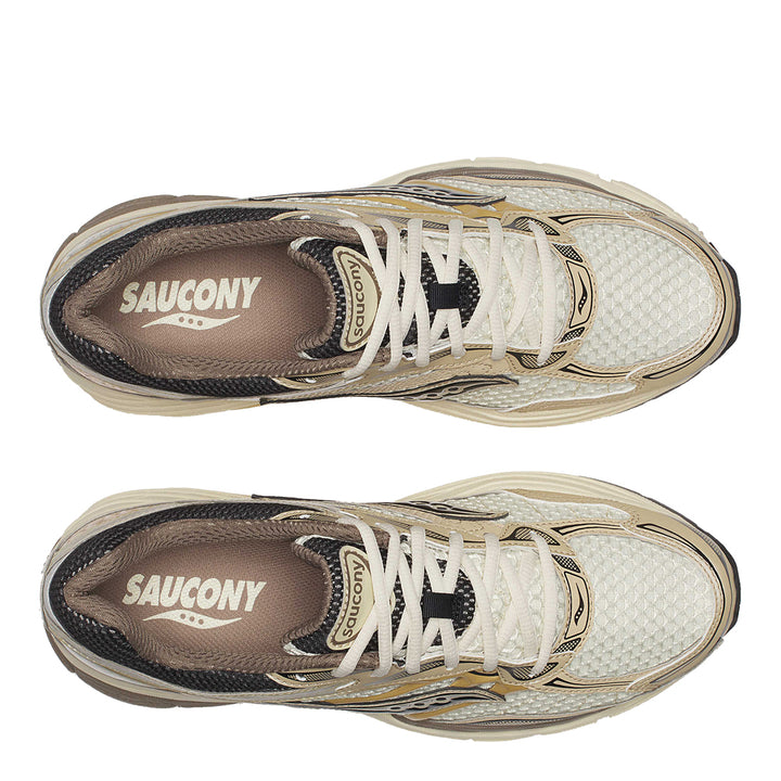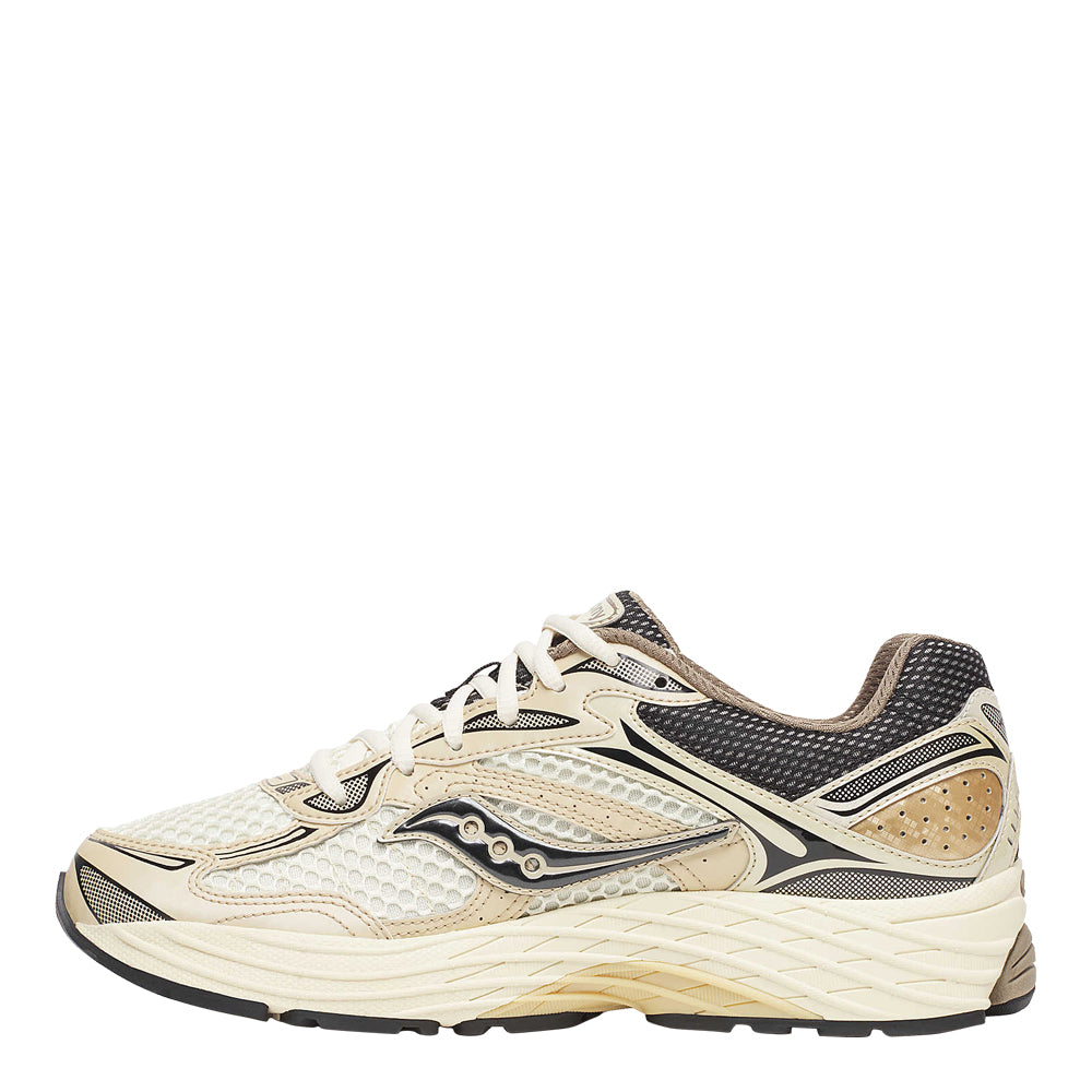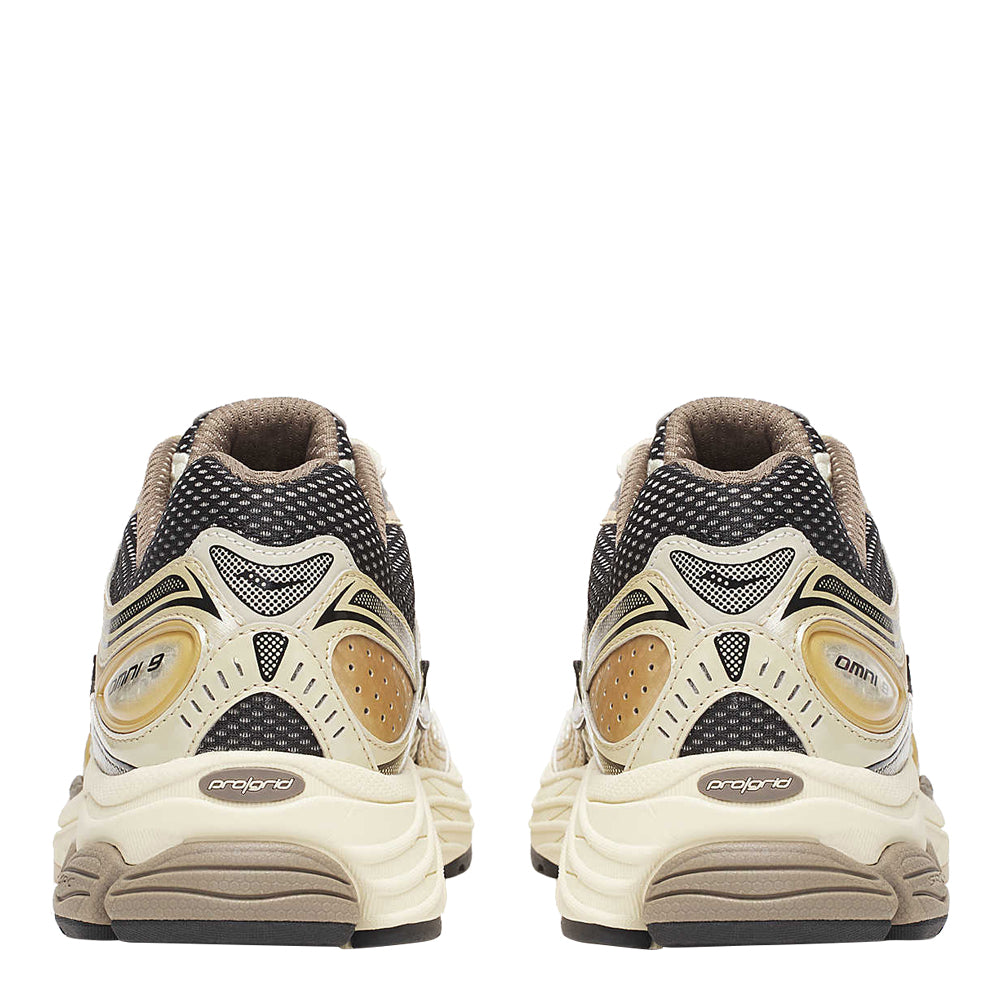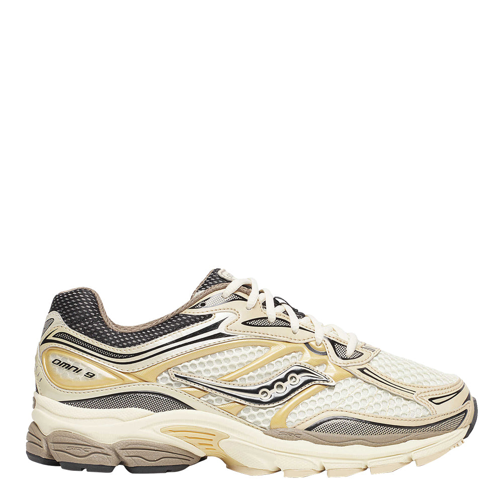 The Saucony OG Progrid Omni 9 Gold is a celebrated reissue of one of Saucony's iconic running shoes, combining retro aesthetics with modern performance features. Known for its distinctive gold accents, this shoe makes a bold visual statement while still catering to the functional needs of runners. The gold detailing not only adds a luxurious touch but also harkens back to the era when this model was first released, appealing to both nostalgic runners and those new to the brand. The shoe’s design threads the needle between vintage appeal and contemporary demands, providing a versatile option for those who appreciate both style and substance in their running gear. Altogether, the Saucony OG Progrid Omni 9 Gold not only honors the legacy of its predecessor but also adapts to the contemporary runner’s needs with adept functionality and timeless style.