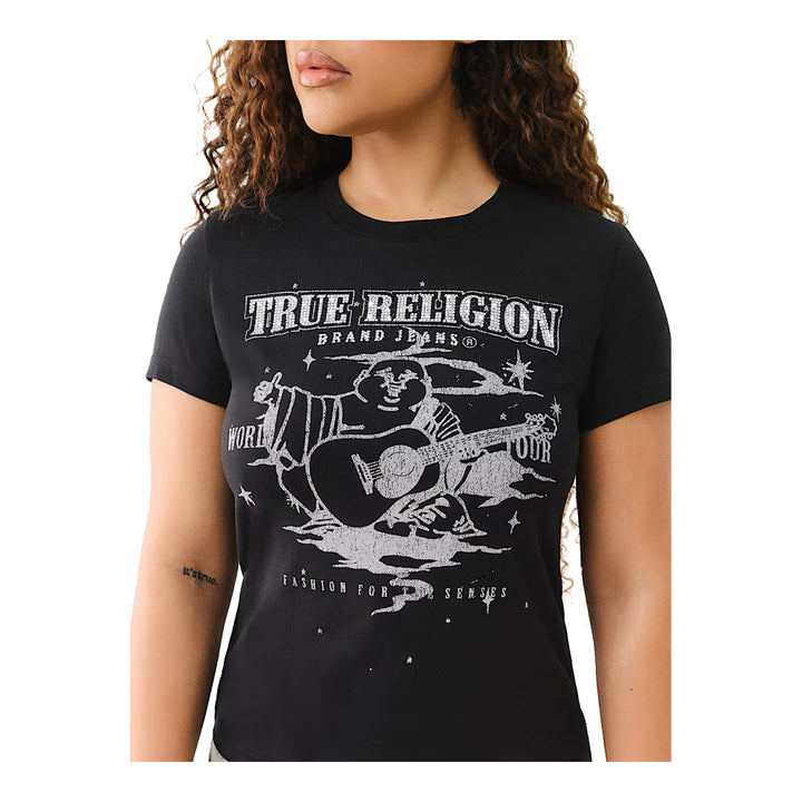 True Religion Women's Crystal Logo Buddha Tee - Black