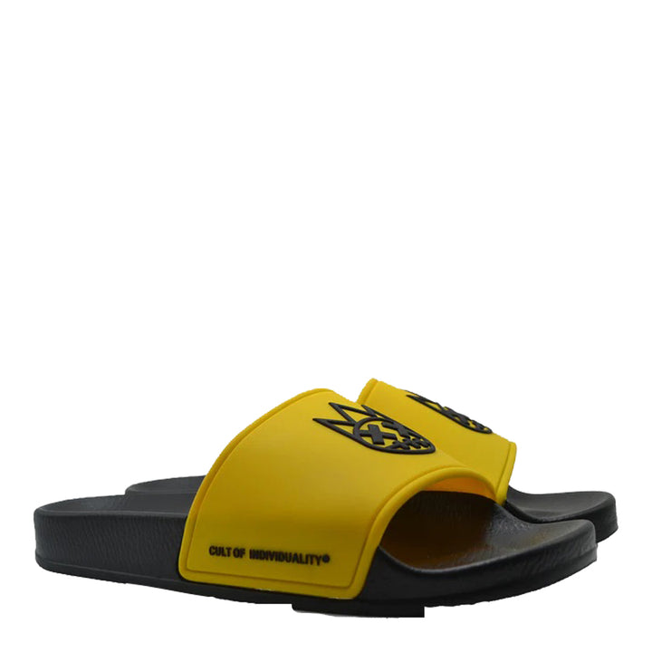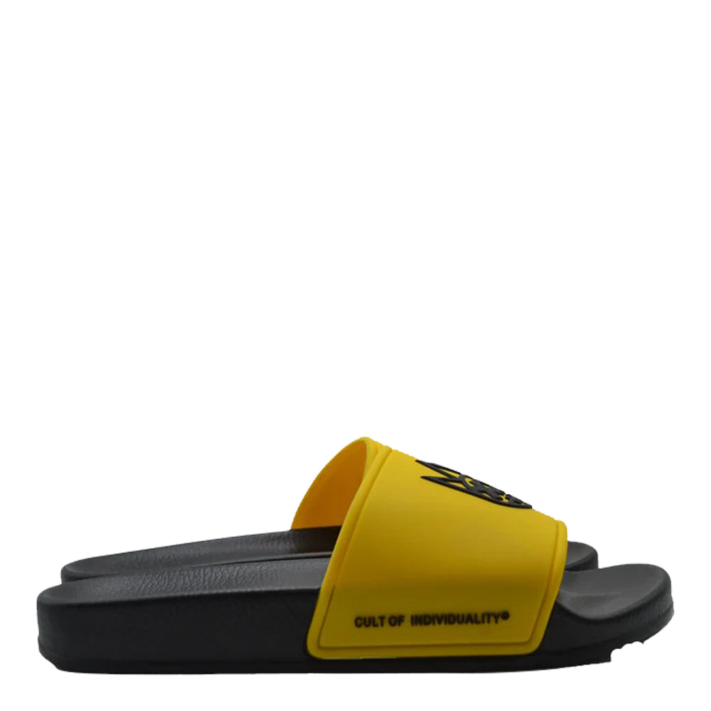 Slip-on and go. These slides mix Cult of Individuality style with a comfortable PU sole, which provides the midsole with the outsole for superior cushioning. Finished with a bold linear logo on the side and a logo on the rubber upper.