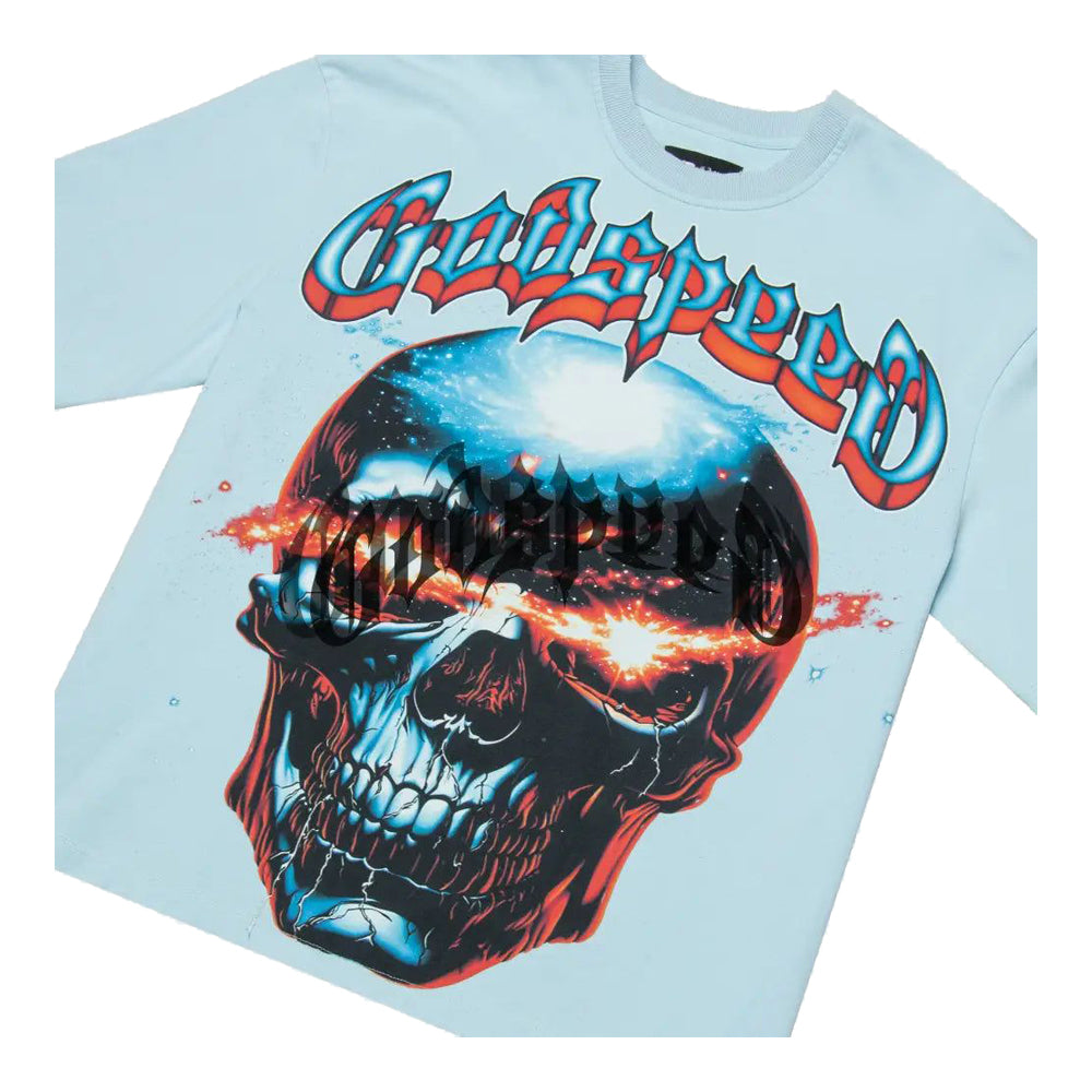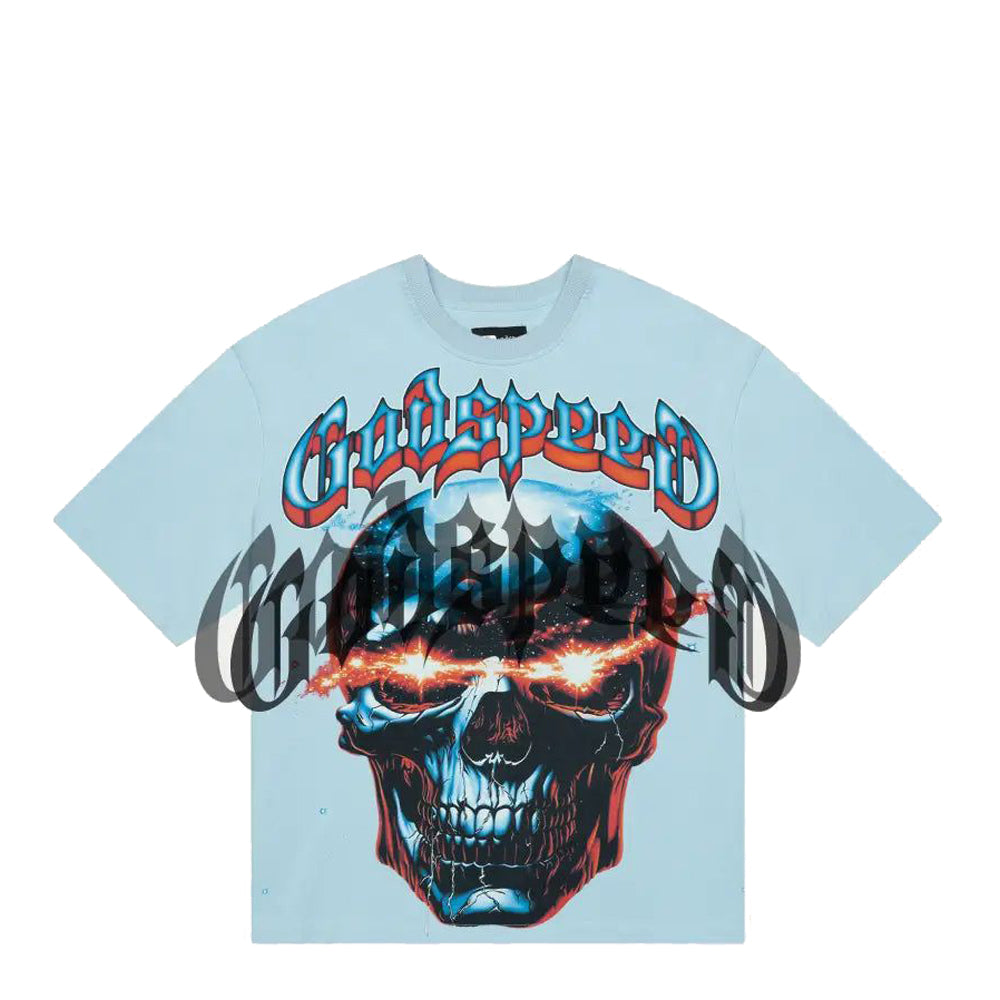 This T-Shirt is crafted from 10oz mid-weight washed fabric and features a striking art piece topped off with stones around the crown.