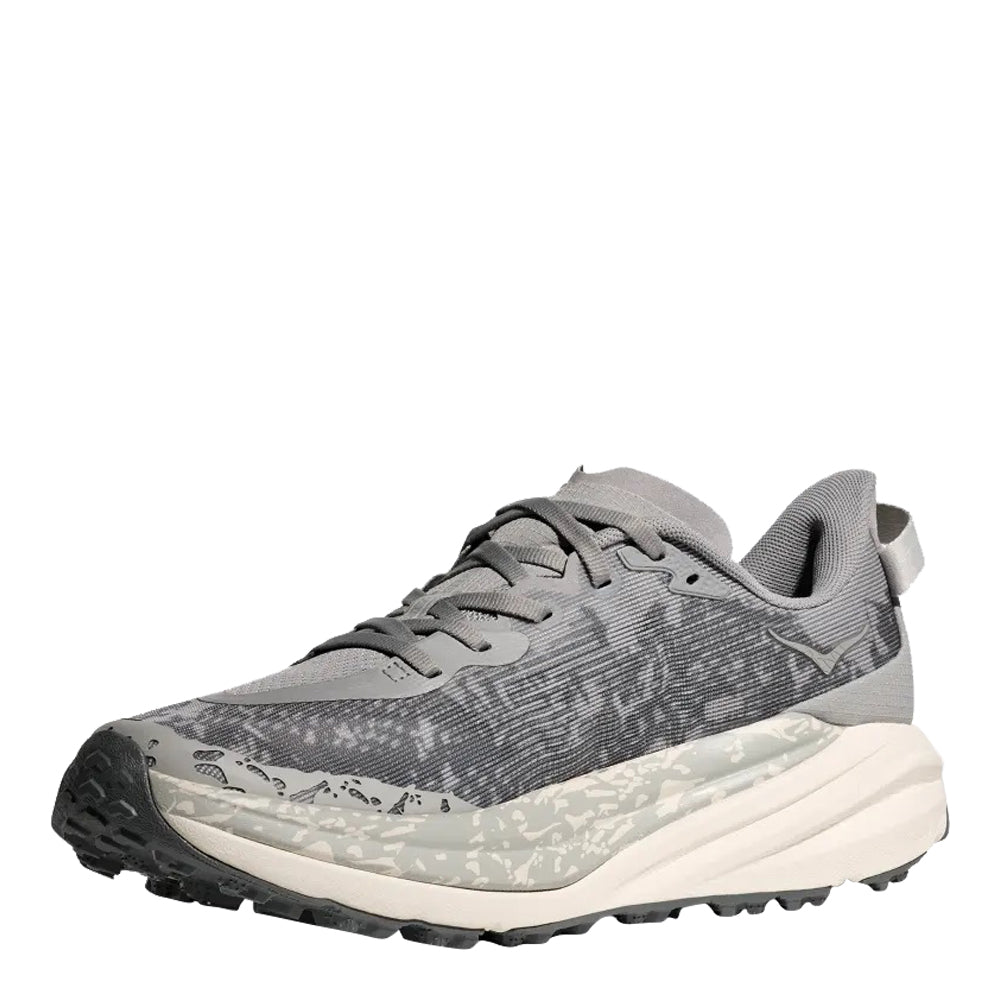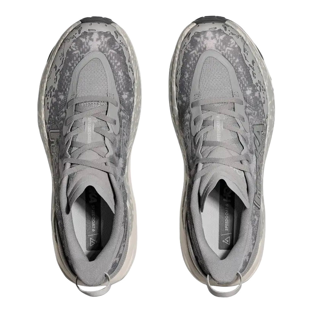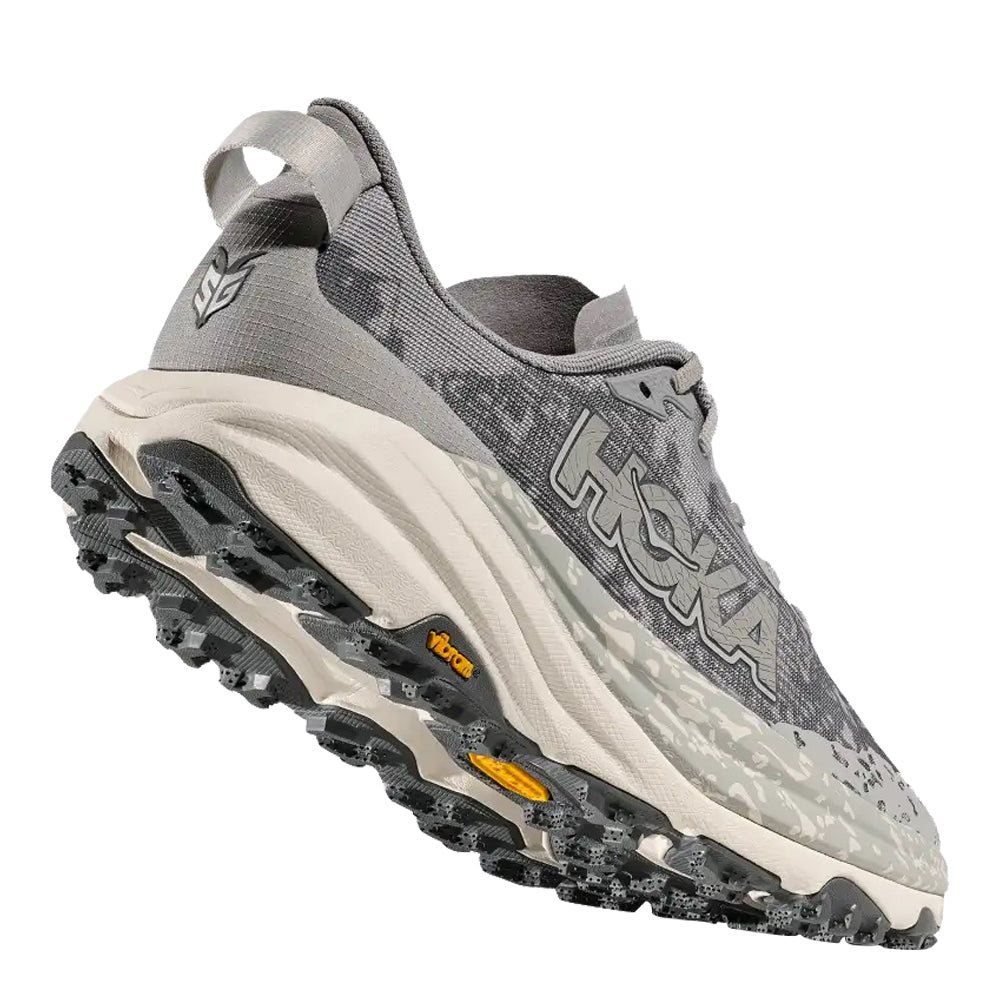 A grippy, responsive ride for technical terrain. There’s only one GOAT on the trail. And this is it. Combining HOKA’s tried and true cushioning with aggressive traction and ultralight materials, the Speedgoat 6 was born to tame the trail. A workhorse for technical terrain, this recent reissue was refined with a breathable woven textile upper, foot-hugging internal chassis, plusher dual gusset tongue, and revised lug orientation inspired by the hoof of a goat (what else?)