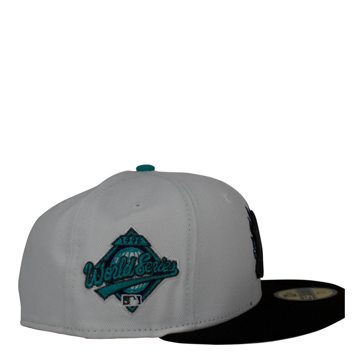 Celebrating their 1996 World Series victory, the New York Yankees World Series 59FIFTY Fitted Cap features a 100% Wool woven fabrication with an embroidered Yankees logo at the front panels and a 1996 World Series Side Patch at the left-wear side with an MLB Batterman logo at the rear.