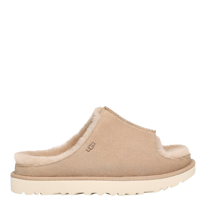 Just ask our Greenport Slide: you can have your slippers in the outdoor summertime, too. A lush addition to your indoor-outdoor collection, the Greenport Slide delivers all of the UGG® comfort you love in a lighter silhouette. Immerse yourself in the naturally moisture-wicking sheepskin lining and insole, or add a pair of socks for extra coziness. From our Classic Boot bottom to the Twin Seam detailing on top, this is how UGG® does sunshine.